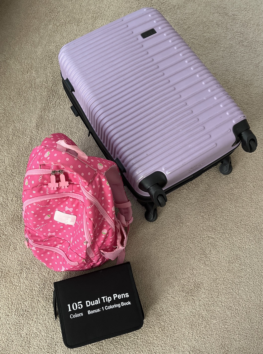 For her birthday she got a set of colored markers and was so proud that she prepared her own carry on back for the flight.